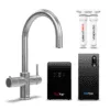 Met deze 4-in-1 kraan met gekoeld water tap je naast koud, warm en kokend water ook direct ijskoud mineraalwater uit één kraan. Daarmee vul je zó flesje met water voor onderweg of zet je direct een kan ijskoude limonade op tafel.