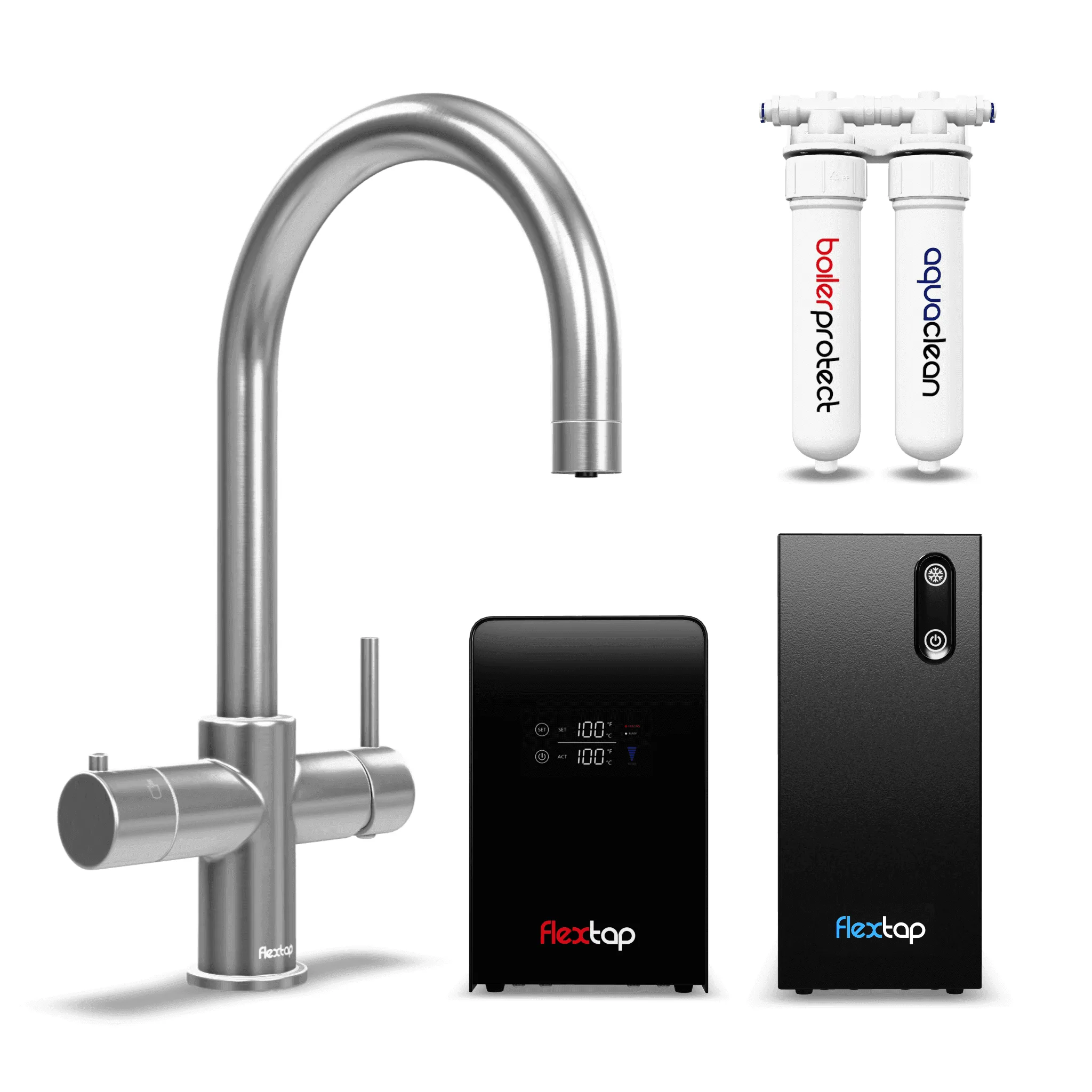 De FlexTap is voor iedereen gemakkelijk te installeren door het speciale Plug-&-Play systeem. Draai simpelweg de leidingen op de waterleiding en boiler, en steek de stekker in het stopcontact! Door de compacte boiler past het systeem in elk keukenkastje.